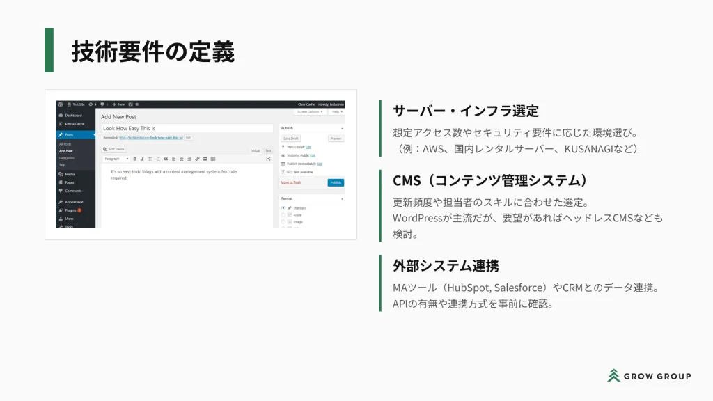 Webサイトの新規立ち上げやリニューアル、要件定義からのしっかりとした設計をご検討の企業様は、ぜひお気軽にGrow Groupまでご相談ください!