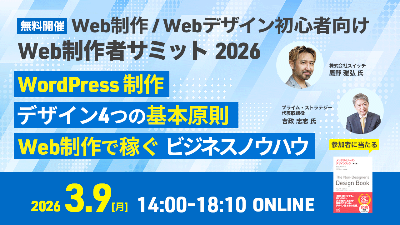 このたび、プライム・ストラテジー株式会社様主催の『Web制作者サミット2026』に、弊社エンジニアスペシャリストの渡邉が登壇いたします!
