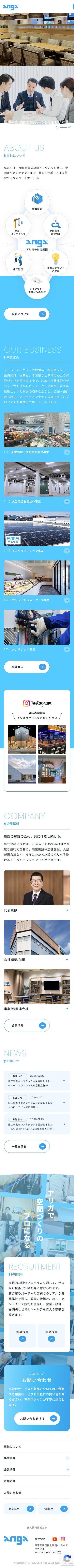 株式会社アリガ様は、商業施設のトータルエンジニアリングをコア事業とする企業様です。15年以上更新されていなかったWebサイトはデザインや構成が古く、スマートフォンにも未対応という課題を抱えておられました。当初は採用強化を目的として採用サイトの制作を検討していましたが、企業全体のイメージアップを図るため、コーポレートサイトも含めた全面的なリニューアルを実施。求職者と取引先企業双方に向け、企業の魅力を的確に伝えることを目指しました。