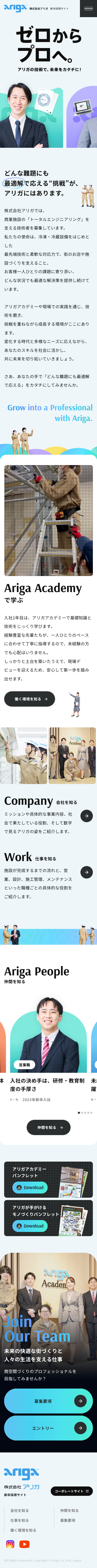 - 求職者の知りたい「仕事内容」「働く環境」「人」の情報を徹底的に可視化。「アリガアカデミー」の紹介や詳細な職種紹介、社員インタビューを通じて、入社後のイメージを具体的に伝え、応募への動機付けを強化した。